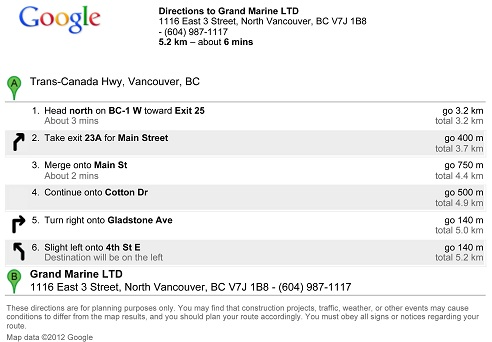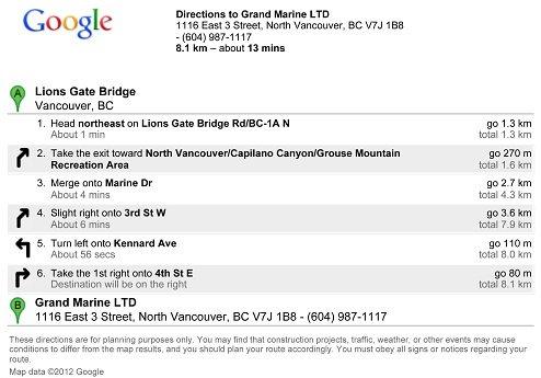 Grand Marine LTD 1116 East 3rd Street North Vancouver, BC V7J 1B8, CANADA